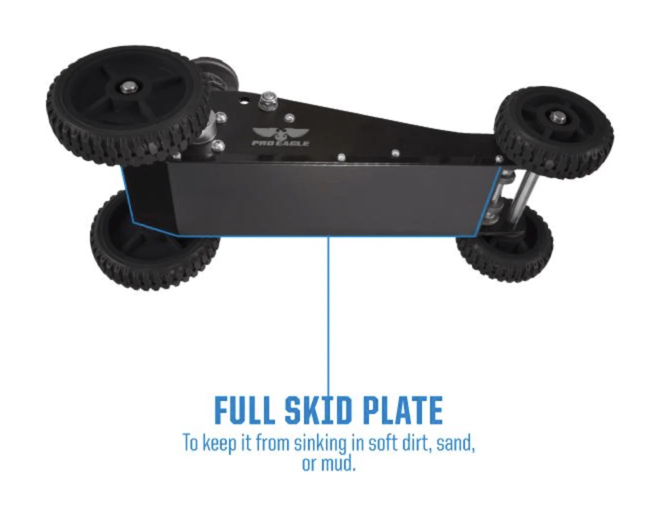 - Full-length steel skid plate to prevent sinking on sand and damage.