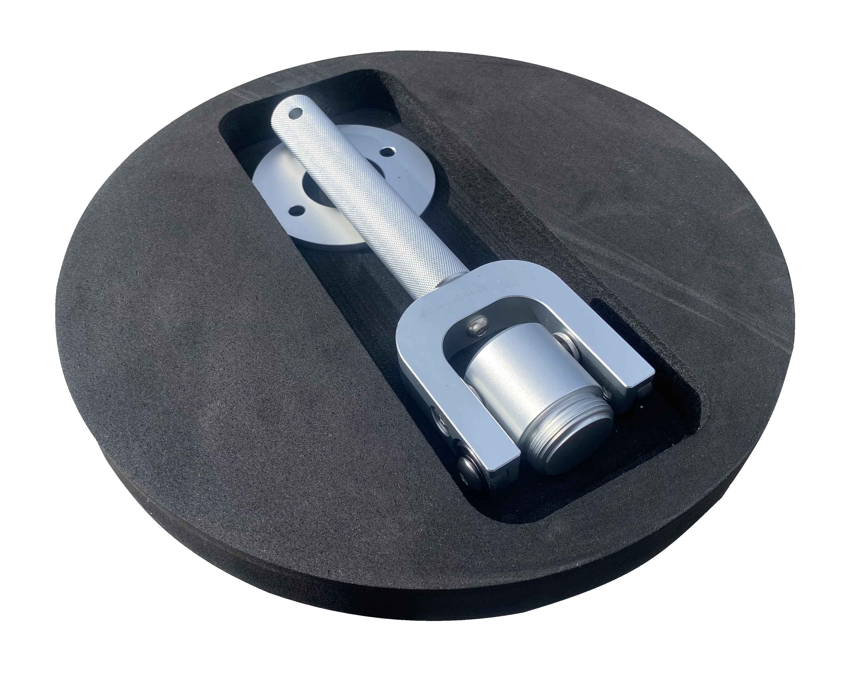 The Universal cutout is large enough to fit a Quick change belt tool (as shown in the image), or any other items you want to add.  12" round with a 10.5" x 4" cut out in the center and two rings around the outside to be removed when your belt is added.Â